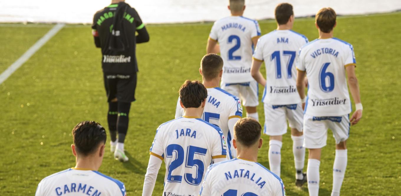 Los jugadores del C.D. Leganés lucieron en sus camisetas los nombres de trabajadoras del club