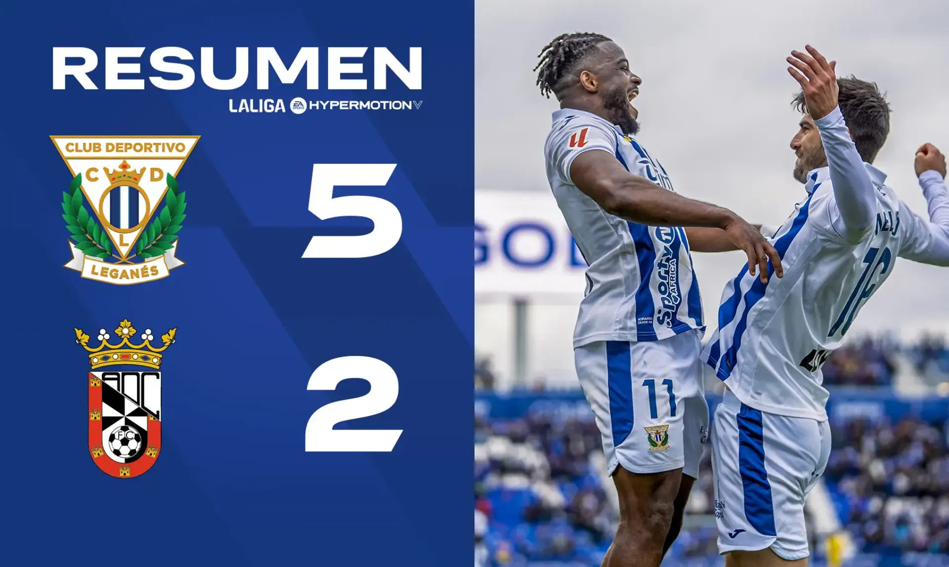 El C.D. Leganés goleó a la A.D. Ceuta en el Estadio Ontime Butarque (5-2), en partido de la jornada 31 de LALIGA HYPERMOTION. Diawara, de penalti, Cissé, Juan Cruz y un doblete de Melero completaron la goleada, mientras que Marcos, también de penalti, y Manu Sánchez marcaron para los visitantes.