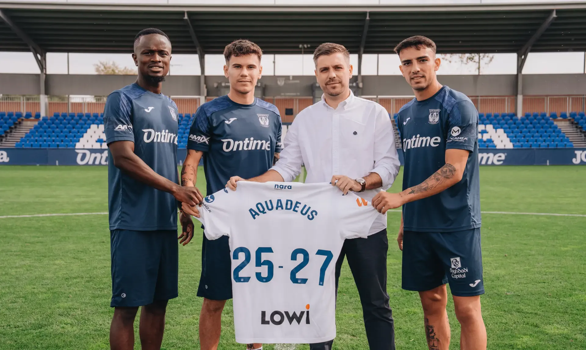 Aquadeus, con una filosofía basada en tres pilares como la calidad, el servicio y la innovación, ofrece al mercado una de las mejores aguas minerales por su composición química. Aquadeus será el proveedor de agua del primer equipo, y tendrá presencia en soportes como el LED del Estadio Ontime Butarque, videomarcador o sala de prensa.