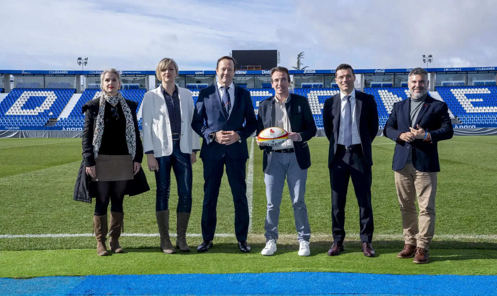 El acto, celebrado en el propio estadio, ha contado con la presencia de Martín Ortega, Director General del C.D. Leganés; Juan Carlos Martín “Hansen”, presidente de la Real Federación Española de Rugby; así como Miguel Ángel Recuenco, alcalde de Leganés, Clara Polonio, Concejala de deportes, y Carlos Delgado, primer teniente de alcalde.