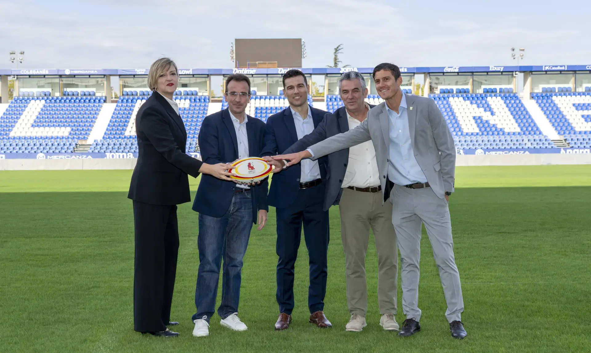 The match, which will serve as preparation for the upcoming European Championship, was presented at an event attended by the general manager of C.D. Leganés, Martín Ortega, the mayor of the city, Miguel Ángel Recuenco, and the general manager of the Spanish Rugby Federation, Jesús María Mardaras.