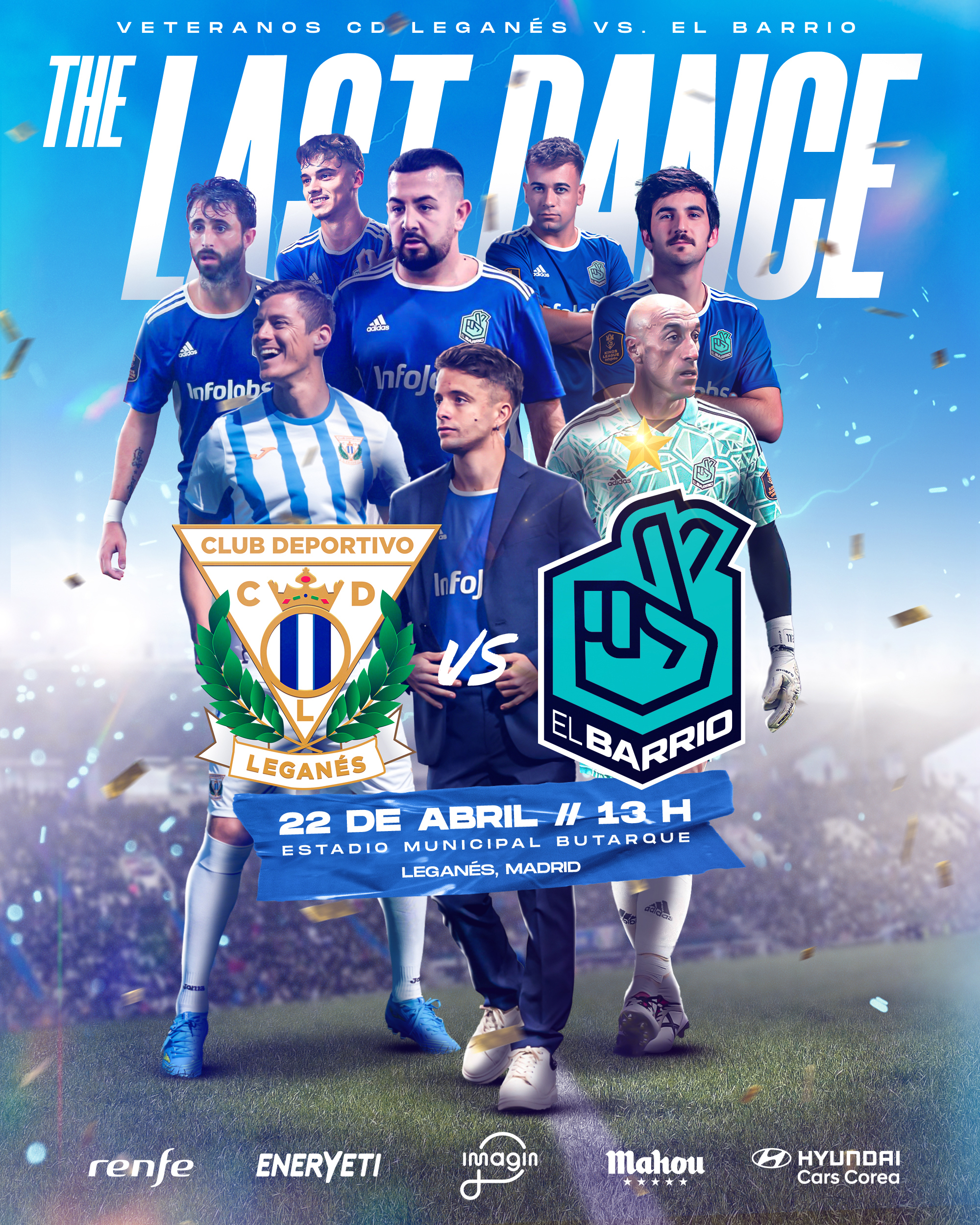 Butarque Municipal Stadium will live a special day this Saturday, April 22. Our stadium will host a match between the Veterans of C.D. Leganés and El Barrio, champion team of the first edition of the Kings League, as well as other activities before and after the match.