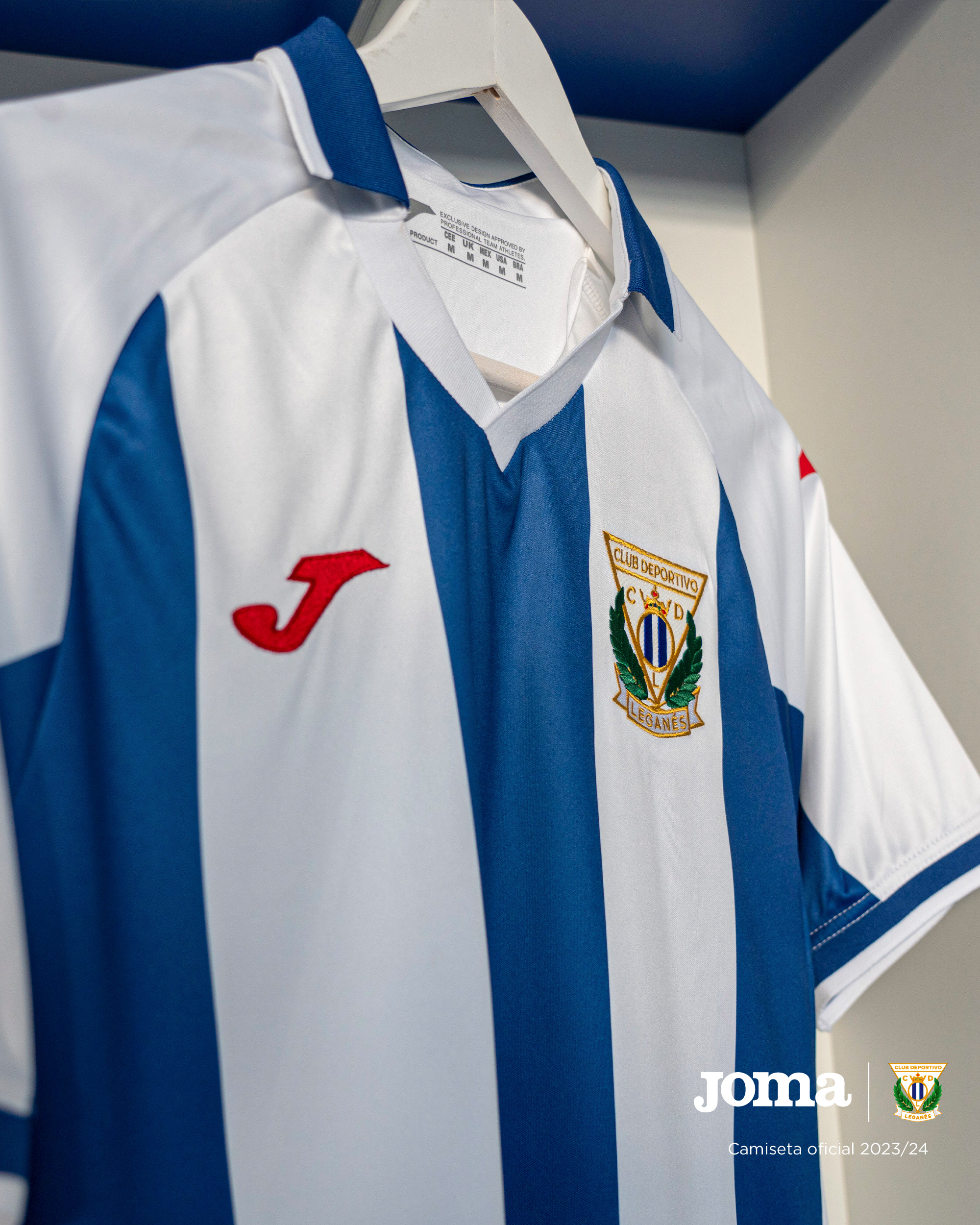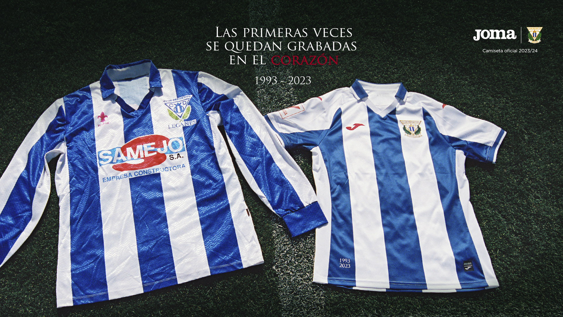 C.D. Leganés presents its new first kit for the 2023/24 season. Inspired by the team that won the first promotion in the club's history to professional soccer, which will be thirty years ago this June 27th, it recovers a traditional design with details and numbers in red.