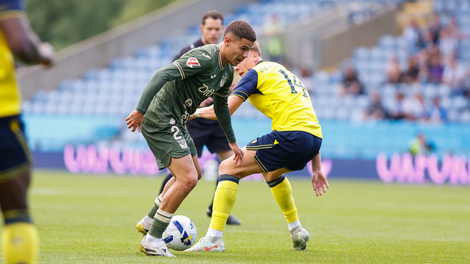 The "pepineros" started with the main novelty of Miguel San Román's debut as goalkeeper, who played his first minutes wearing the Leganés jersey after joining the team a few days ago. The new Lega goalkeeper made his first save 15 minutes into the match, stopping a chance from Mills for Oxford United, and shortly after, he appeared again to block a shot from Bradshaw in an energetic start by a very physical British team.