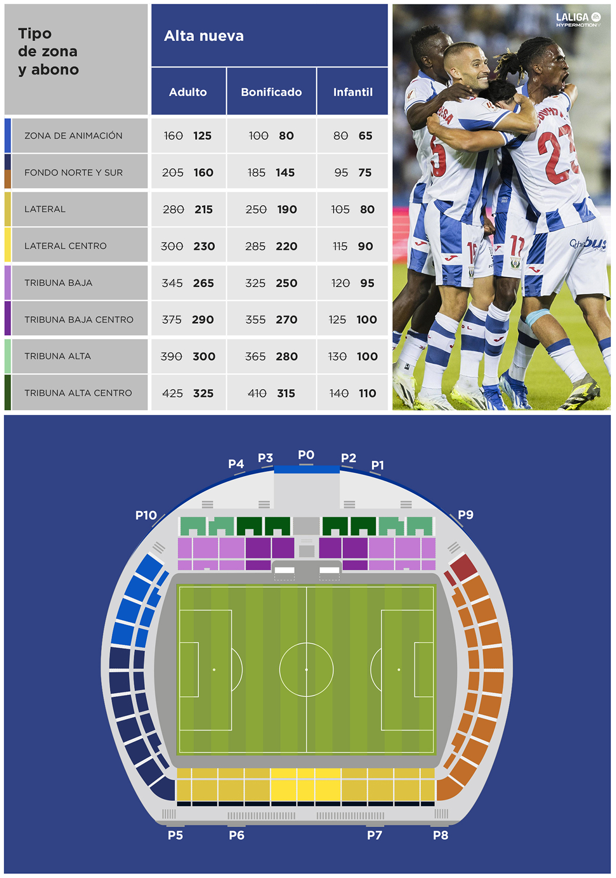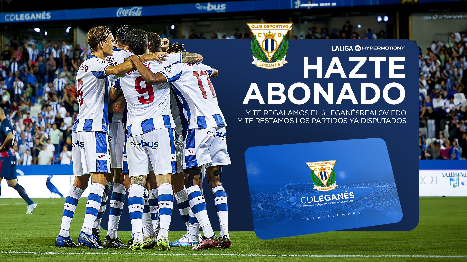 Tras el buen comienzo liguero, el C.D. Leganés quiere animar a todos sus simpatizantes a que puedan disfrutar del buen ambiente que se vive en las gradas de Butarque y desde 80€ (precio bonificado en Zona de Animación) podrán abonarse disfrutando, además, del próximo partido que se jugará en Butarque ante el Real Oviedo.