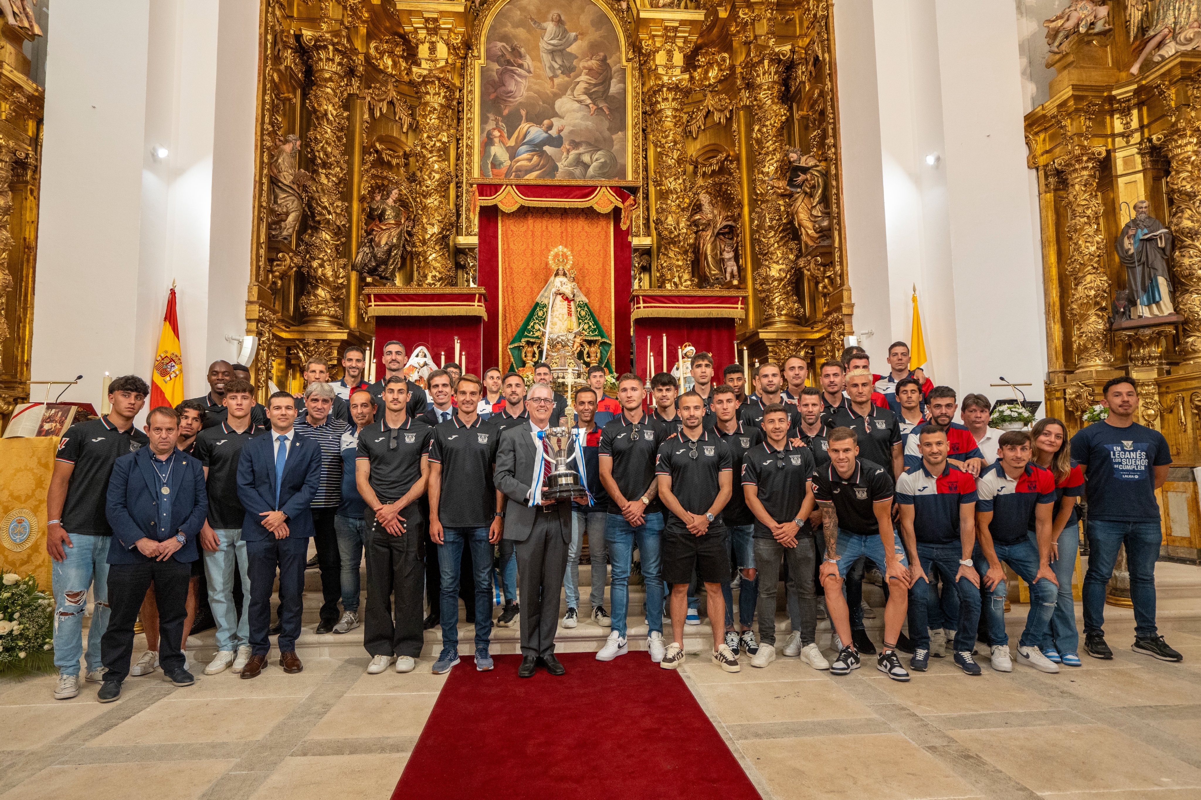 Ya de vuelta a Leganés, por la tarde fue turno de la ofrenda a la Virgen de Nuestra Señora de Butarque, patrona de nuestra ciudad, en la iglesia de San Salvador. Fue el último de los actos institucionales con los que el club ha celebrado un histórico ascenso que devuelve al club a la elite de nuestro fútbol.