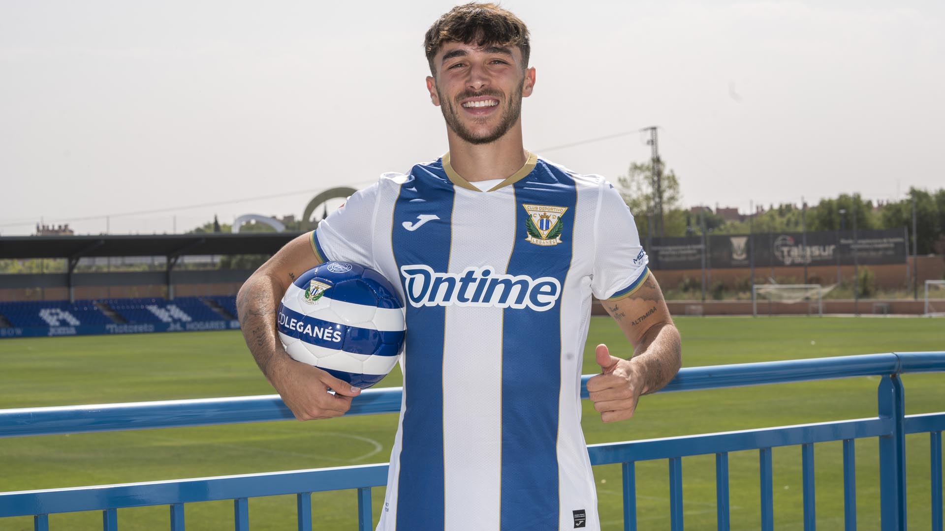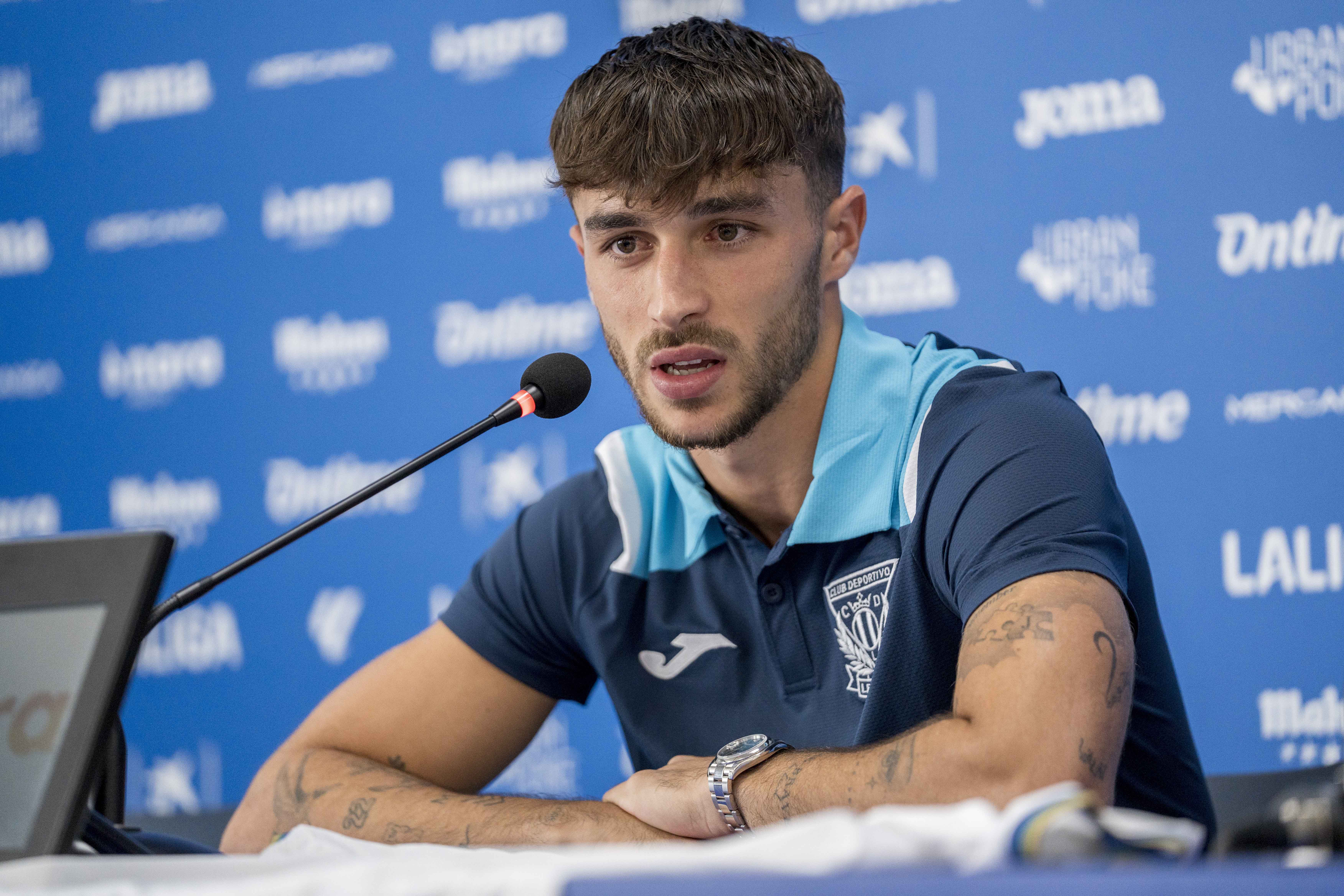 El director deportivo del club, Txema Indias, fue el encargado de abrir el acto de presentación dándole la bienvenida: "Es un jugador en una posición que necesitábamos. Nos da esa polivalencia de otros jugadores, le hemos visto jugar en el perfil izquierdo o por delante. Quiero agradecer al Villarreal su disponibilidad y a él, que tenía claro que quería vestir la camiseta del Leganés a pesar de tener otras situaciones interesantes. Viene del barro, criado en una cantera como la del Barcelona, pero tuvo que salir al extranjero y volver a España, al Melilla, ascender con el Andorra, aparecer en un club como el Villarreal y jugar con el primer equipo. Es algo que no consigue cualquiera. El proceso ha sido un poco largo, pero teníamos claro que queríamos tenerle con nosotros".