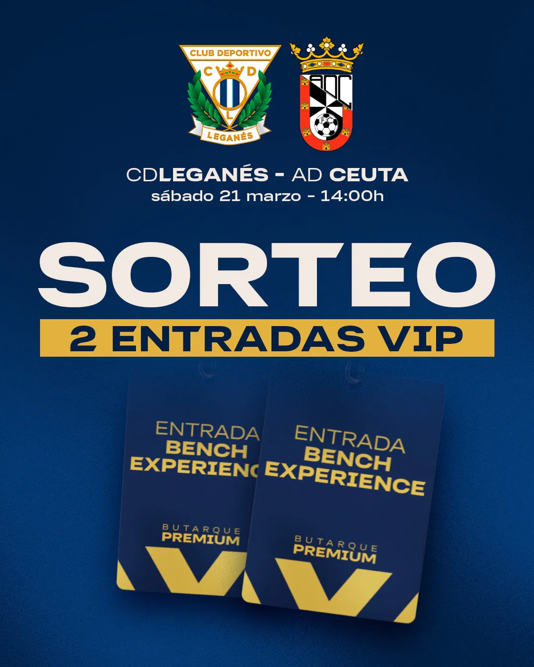 SORTEO: dos entradas BENCH EXPERIENCE para EL CD LEGANÉS VS AD CEUTA